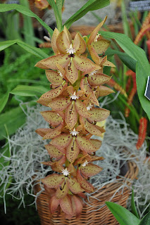 Cymbidium tigrinum. I forgot to record the vendor's name of this exhibit. This small plant had four spikes, each with four flowers.
